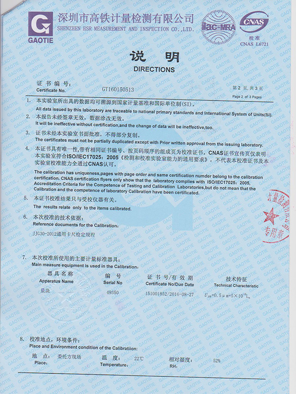 帶表卡尺校準(zhǔn)證書