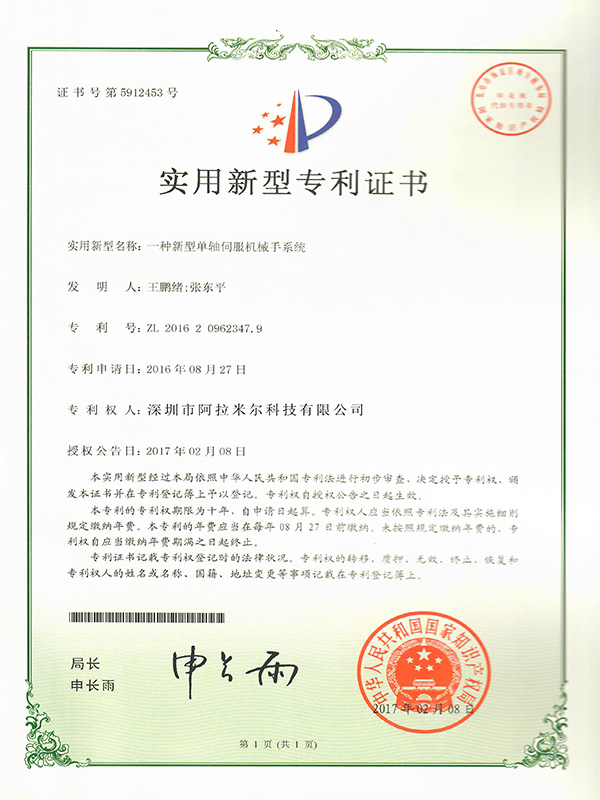 實(shí)用新型專利證書